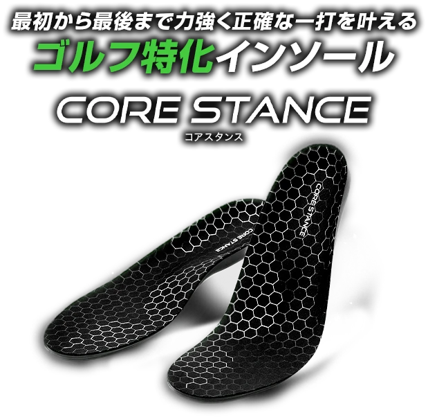 ゴルフ特有の動きに最適化されたゴルフ専用のインソール「CORE STANCE(コアスタンス)」はゴルフのパフォーマンスを最大限発揮できるよう設計されています。
